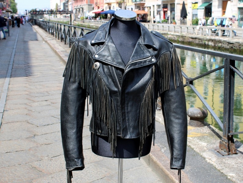 Giubbotto pelle chiodo Schott frangiato frange mad