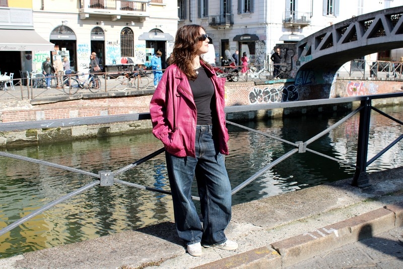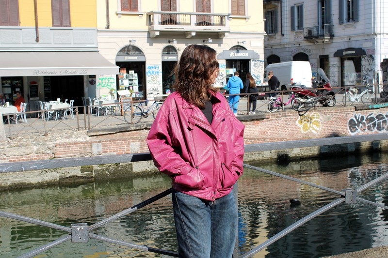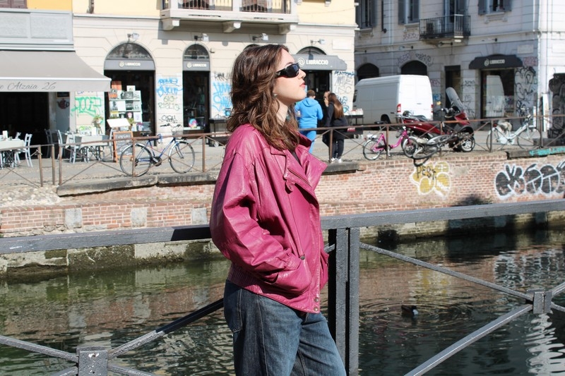 Modello: Bomber oversize donna, stile anni '80 / '90 Colore: Violetto (tonalità: viola elettrico / lilla intenso a seconda della luce) Taglia: Taglia unica (oversize) Vestibilità sulla modella: La ragazza in foto è alta 170 cm, fisico normale — il bomber risulta volutamente ampio, cade sui fianchi e crea silhouette boxy tipica anni '80/'90. Materiale (tipico): Pelle Chiusura: Zip centrale Tasche: Tasche presenti Spalle / maniche: Spalla scesa (drop shoulder) per effetto oversize Condizioni / note fotografiche: ottimeGuarda le misure e informazioni sulla taglia