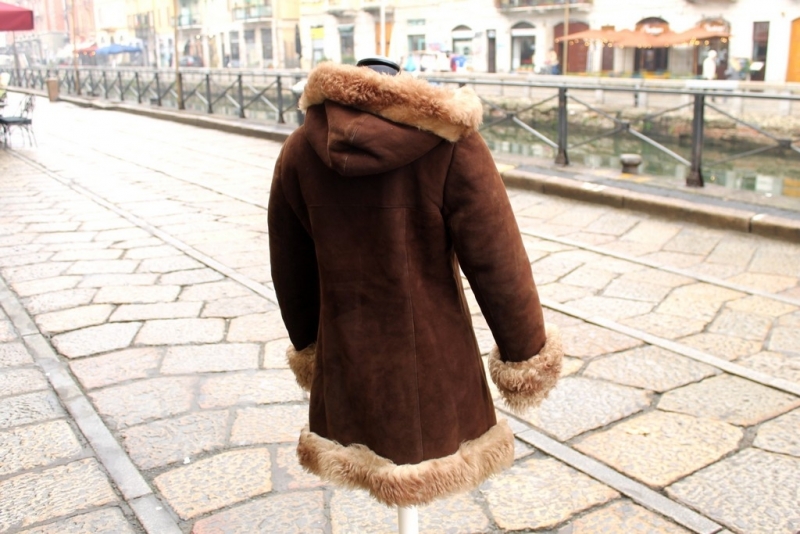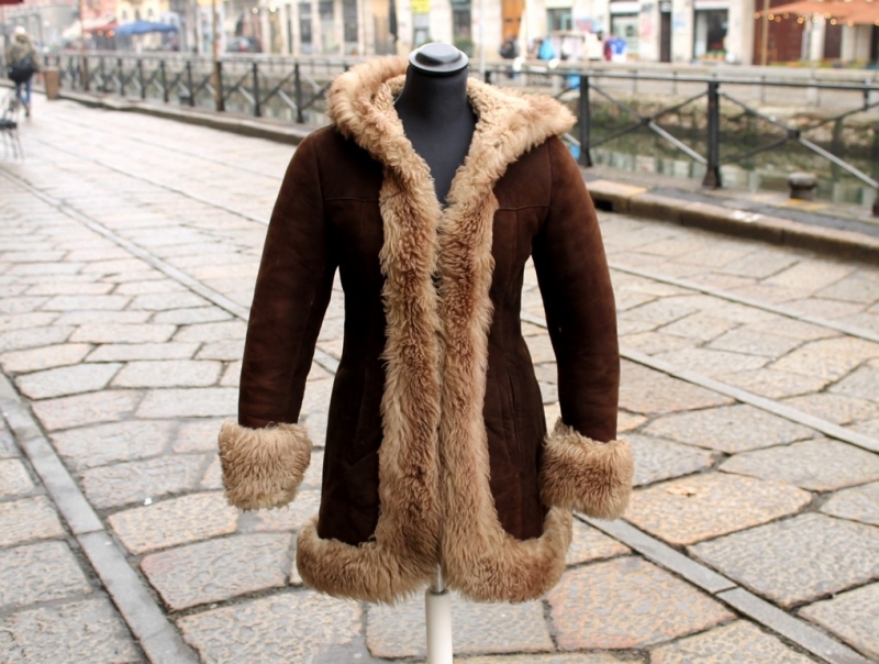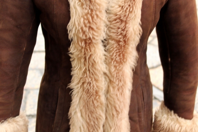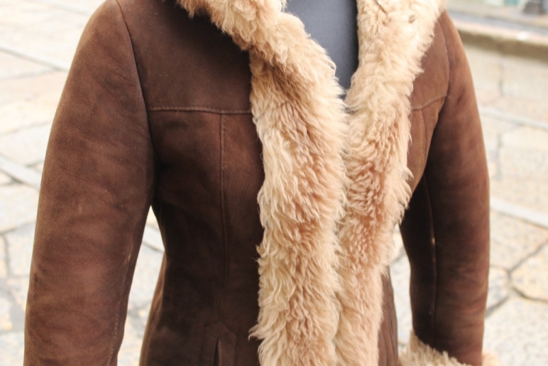 Epoca: Originale anni ’70 Materiale esterno: Vera pelle di montone Interno: Shearling Colore: Marrone scuro Taglio: Lineare Dettagli: