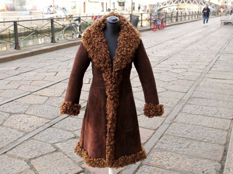 Epoca: Originale anni ’70 Materiale esterno: Vera pelle di montone Interno: Shearling Colore: Marrone scuro Taglio: Lineare Dettagli: