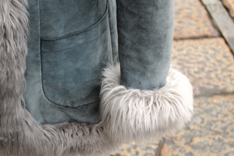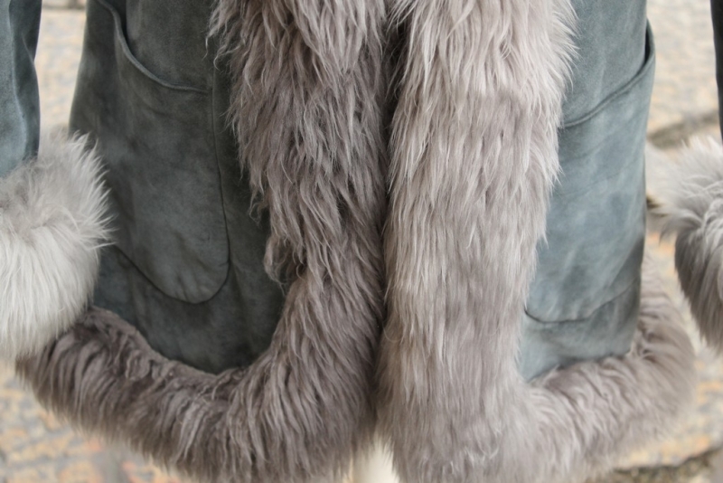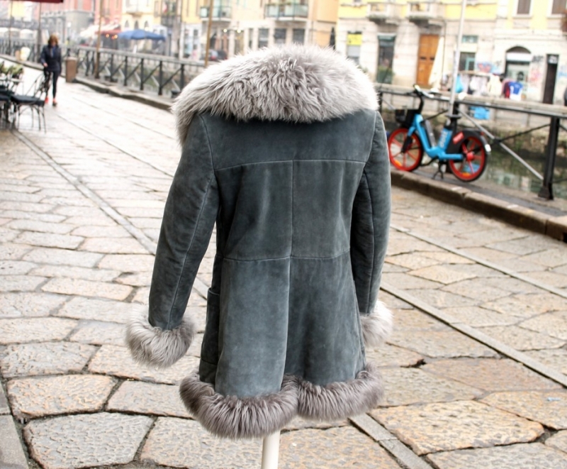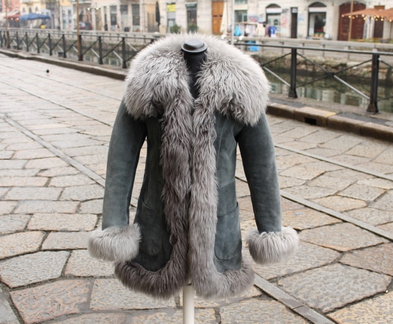 Cappotto Pelle Scamosciato Vintage Grigio Collo e inserti in Shearling