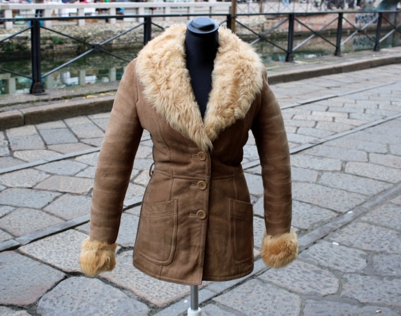 Cappotto Pelle Montone Shearling Anni 70 Taglia XS
