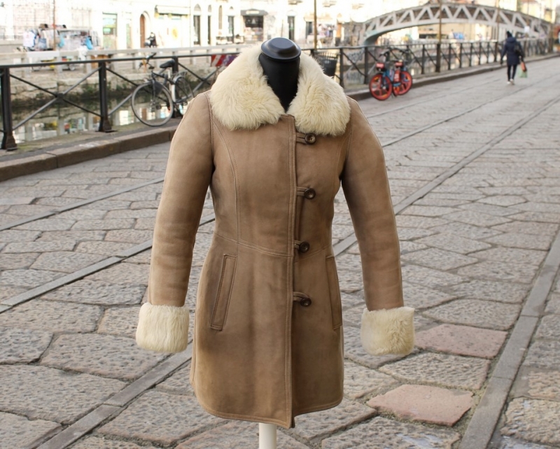 Cappotto Pelle Montone Shearling Anni 70 Donna Taglia S