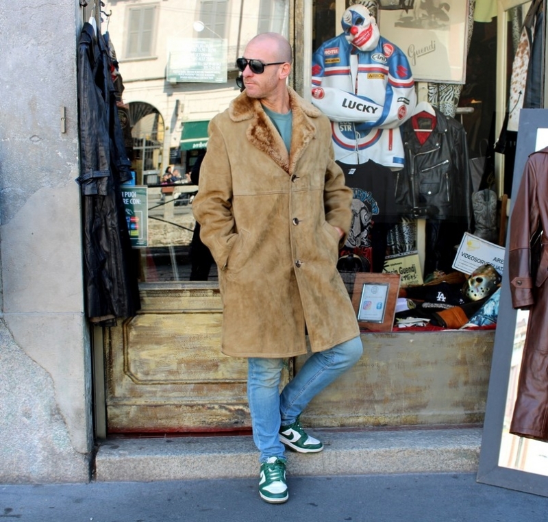 Cappotto originale vintage risalente agli anni '70/'80, realizzato in vera pelle scamosciata dal look intramontabile.