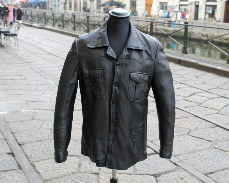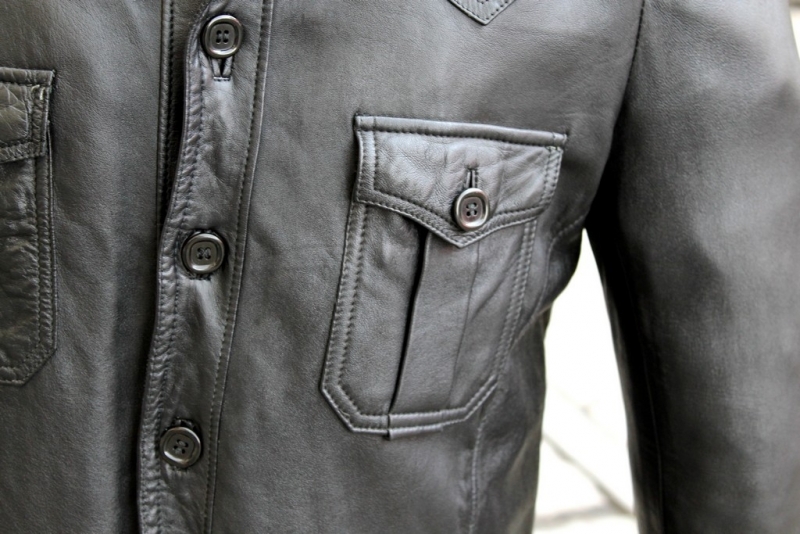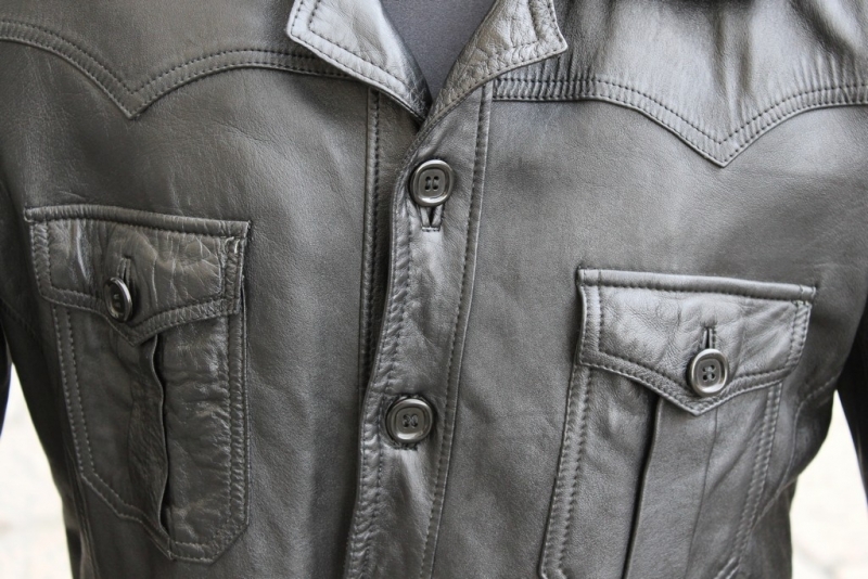 Giacca Pelle Modello Camicia Vintage Taglia L