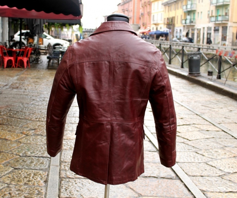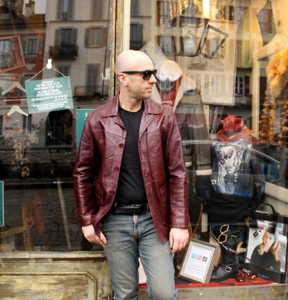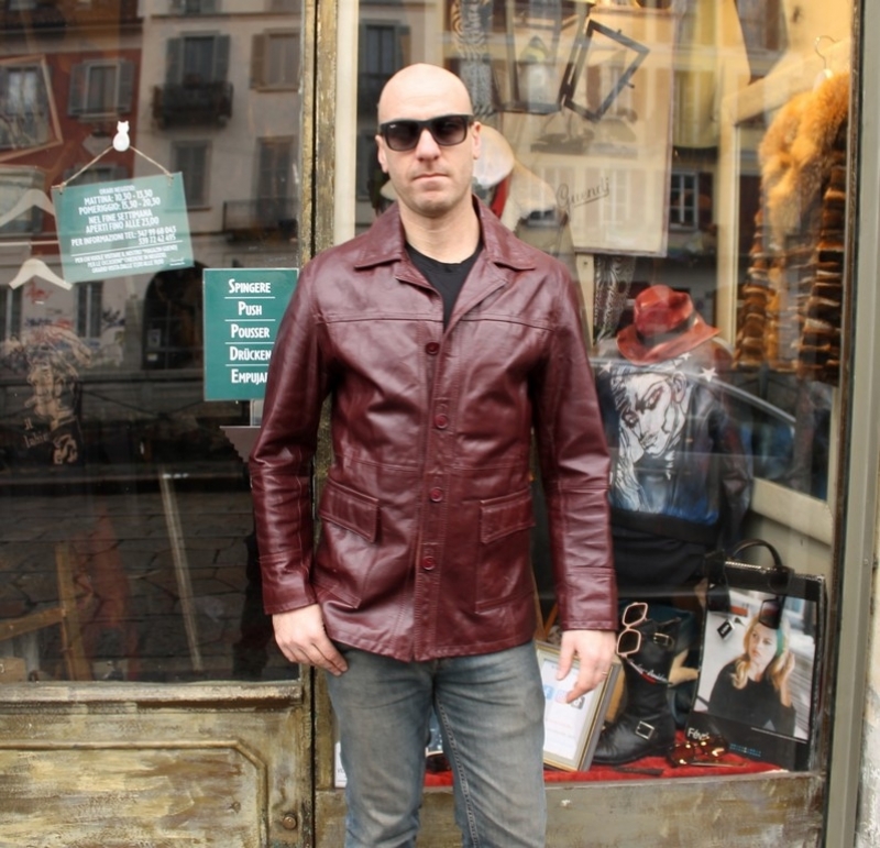 Giacca Pelle Vintage mod Fight Club Red Wine tg M