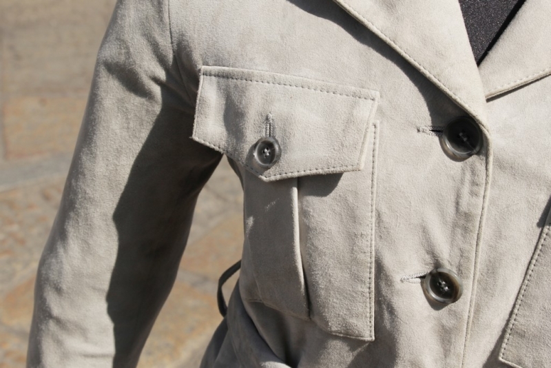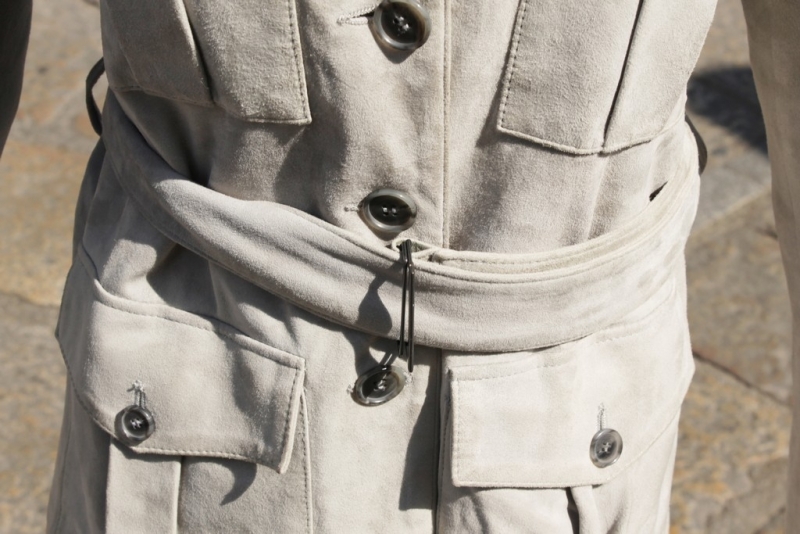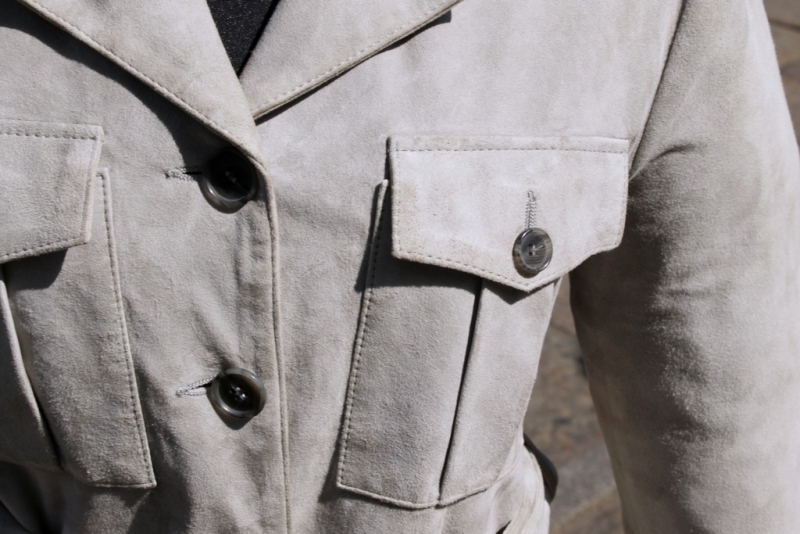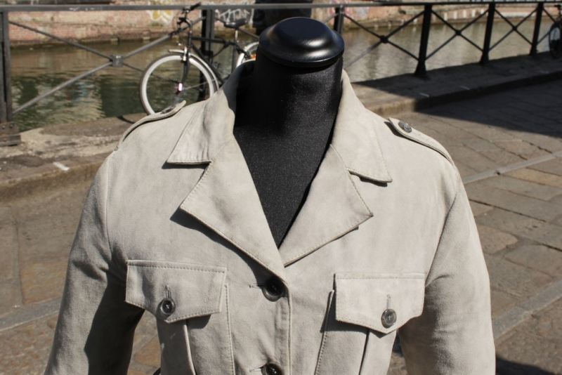Giacca Trench Pelle Scamosciata Vintage Taglia 44