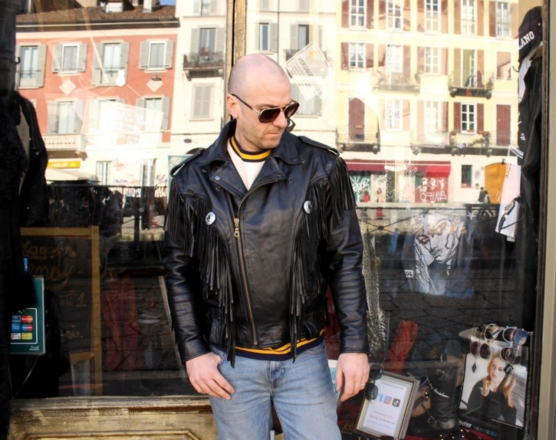 Giacca Chiodo Pelle Frange Uomo Donna Unisex