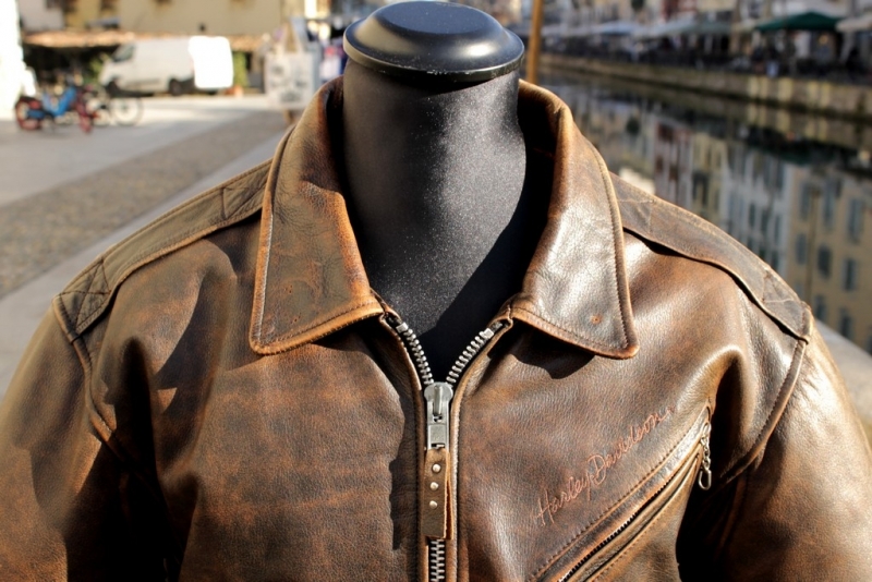 Giacca Pelle Harley Davidson Marrone Vintage Invecchiato