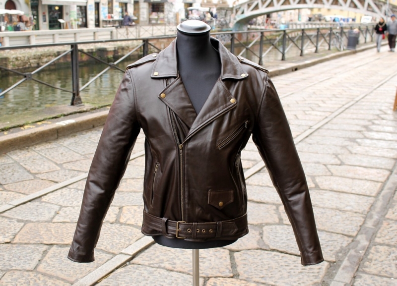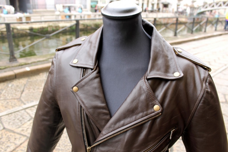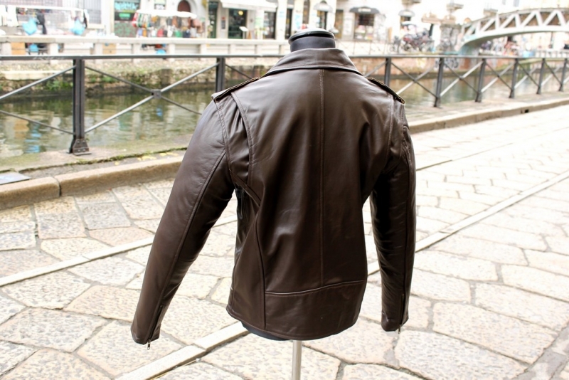 Giubbotto chiodo pelle moto biker marrone scuro Gu