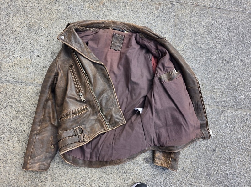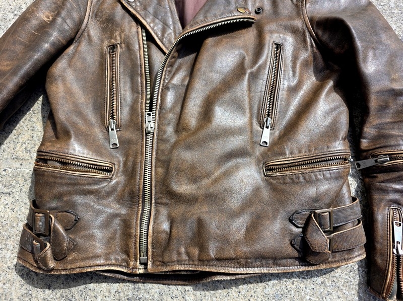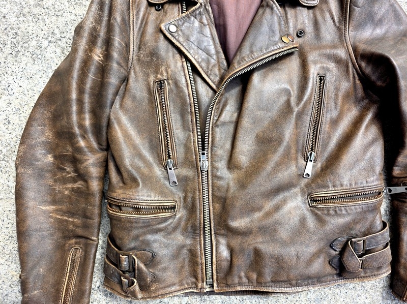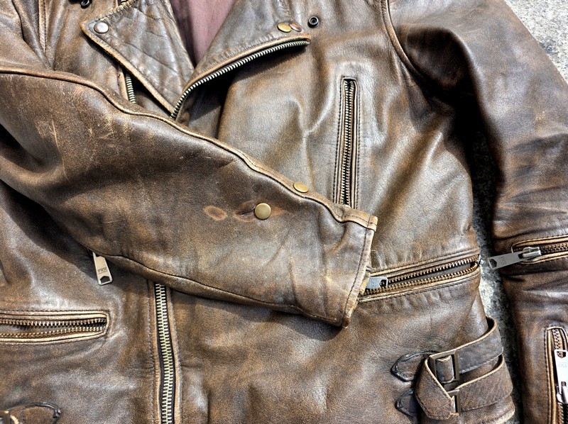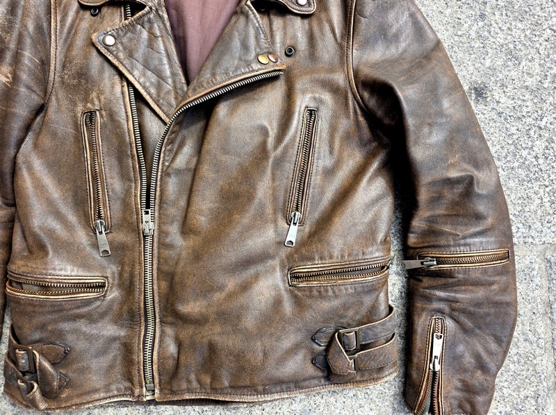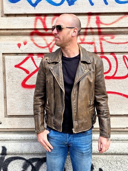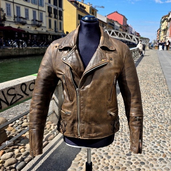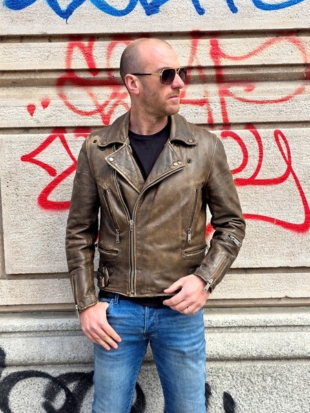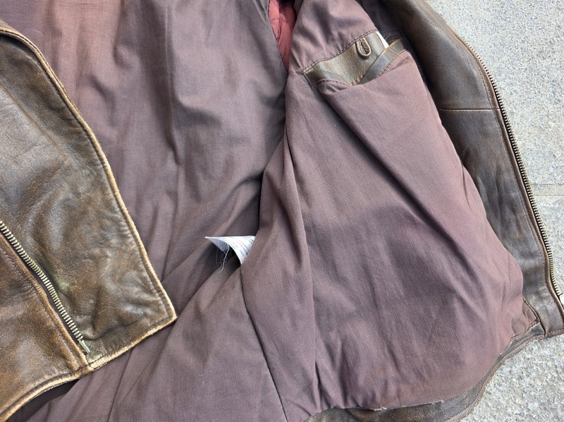 Giubbotto Pelle Marrone Cuoio Invecchiato Vintage