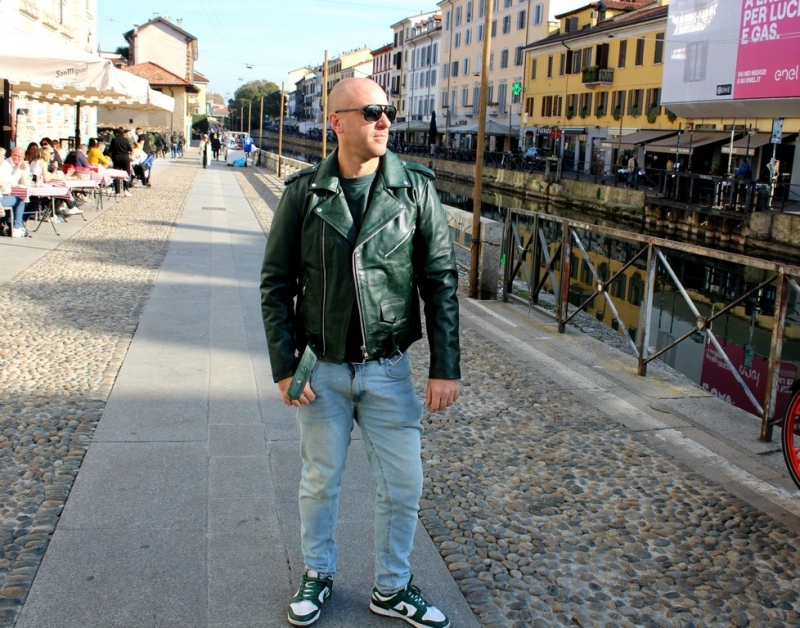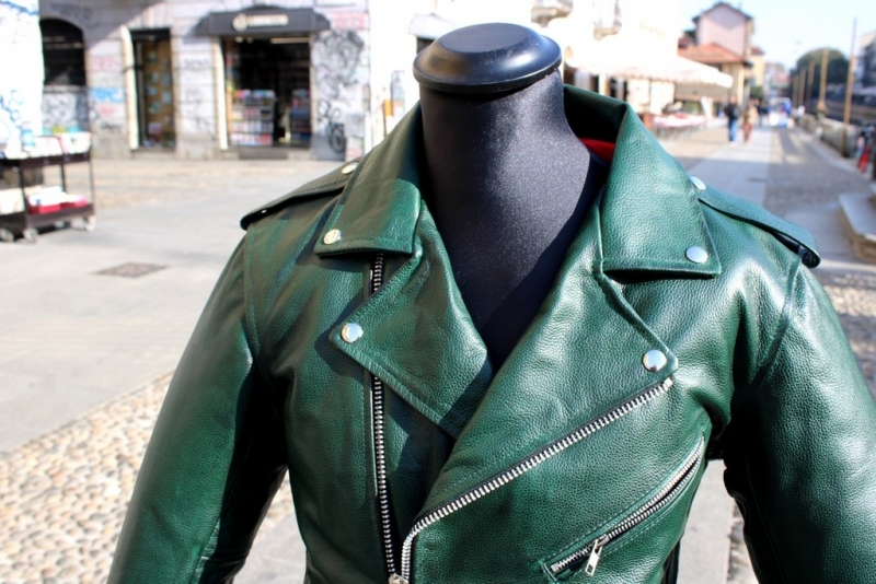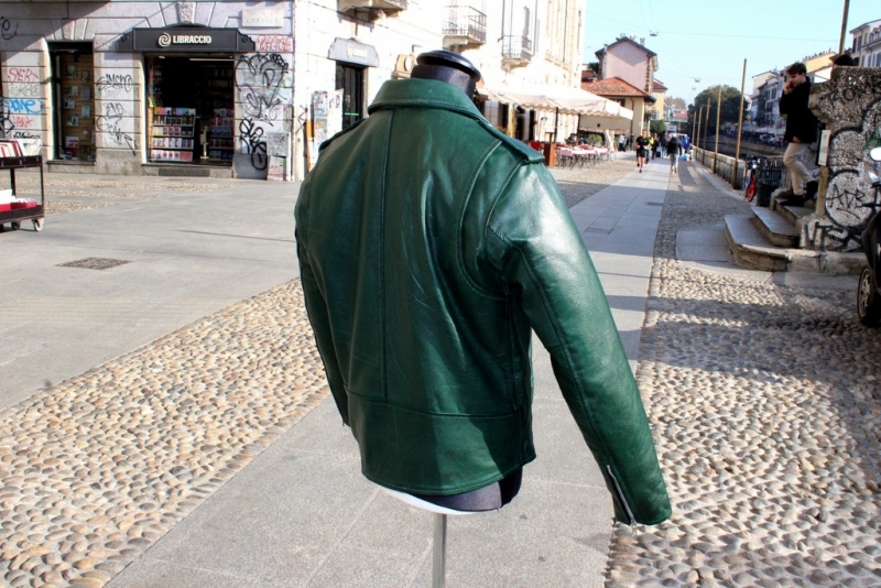 Giubbotto Chiodo Pelle Verde Scuro taglia L uomo Limited ed