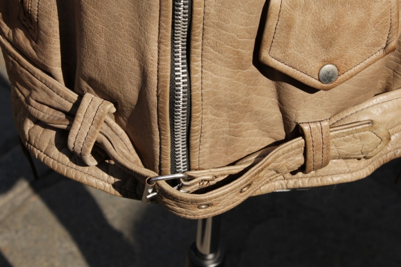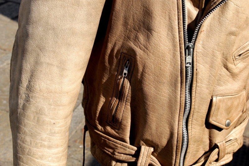 Giubbotto Pelle Chiodo Marrone Chiaro Vintage