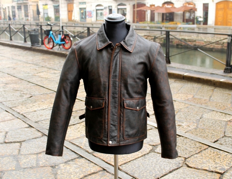 Giubbotto Pelle Modello Aviator Guendj Marrone Invecchiato