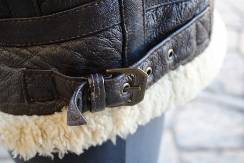 Modello: Montone aviatore donna Tipo: Giacca da aviatore / Bomber militare - Itinerance Colore: Marrone Taglia: M (puo vestire una S comoda) Vestibilità: Classica – avvolgente e calda, taglio tipico da aviatore Segni distintivi: Colletto oversize con cinturini, cinghie laterali regolabili, zip metallica robusta, dettagli originali - Colletto removibile Materiale: 100% pelle naturale con interno in vero shearling (montone) Fodera interna: Shearling integrale – isolamento termico eccellente Condizioni: Vintage ottimo stato Guarda le misure e informazioni sulla taglia