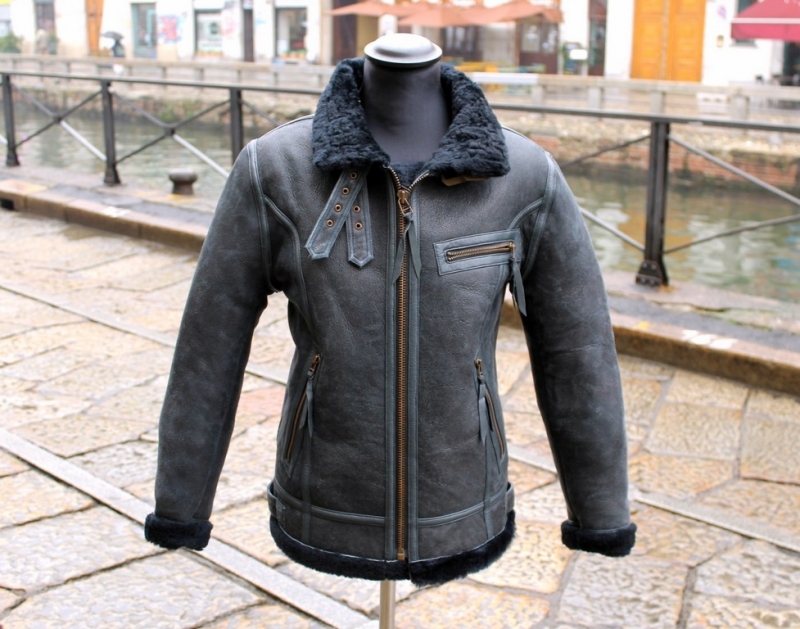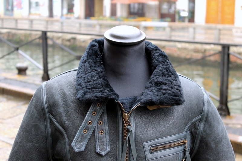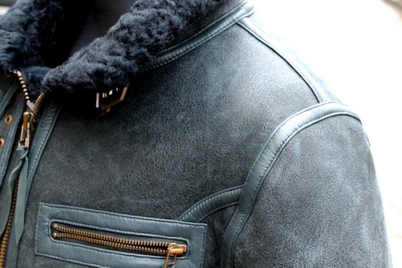 Giubbotto Montone Aviatore RAF B3 Guendj Blu Antracite