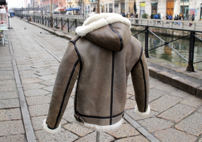 Giubbotto Montone Aviatore b3 Marrone con cappuccio removibile Guendj