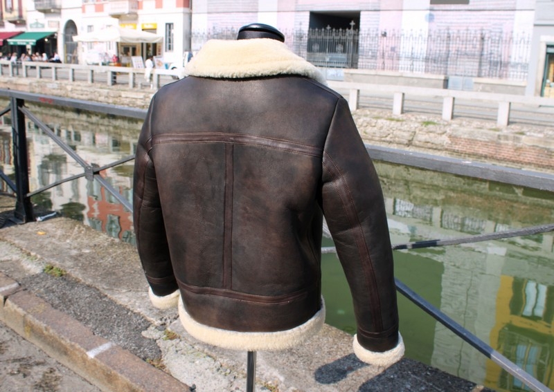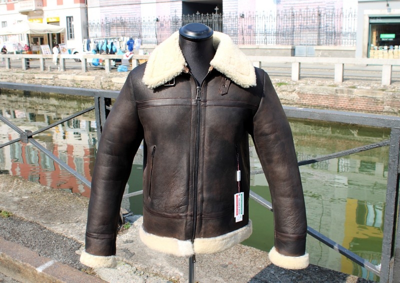 Giubbotto in vero shearling naturale (montone rovesciato), caldo, morbido e resistente.