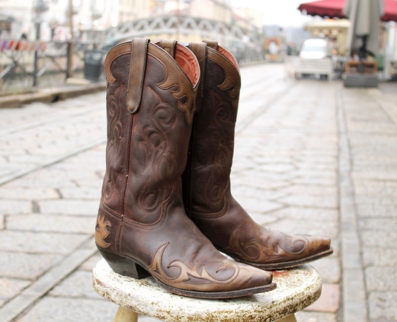 Stivali Pelle Texani Vintage Go West Made in Mexico (n. 44)