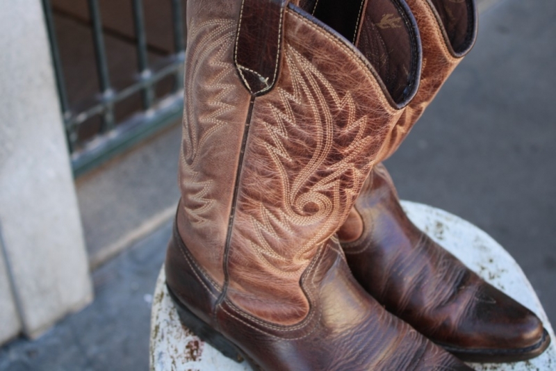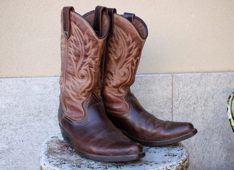 Modello: Stivale texano vintage - Mister Minit Colore: Marrone cuoio Numero: 41 (puo andar bene uomo donna) Materiale: Pelle naturale vero cuoio Stile: Western / Cowboy Dettagli: Cuciture decorative tipiche del modello texano, punta affusolata, tacco inclinato Condizioni: Ottime – usura minima, pelle ben conservata Adatto per: appassionati di stile western, collezionisti o uso quotidiano Guarda le misure e informazioni sulla taglia