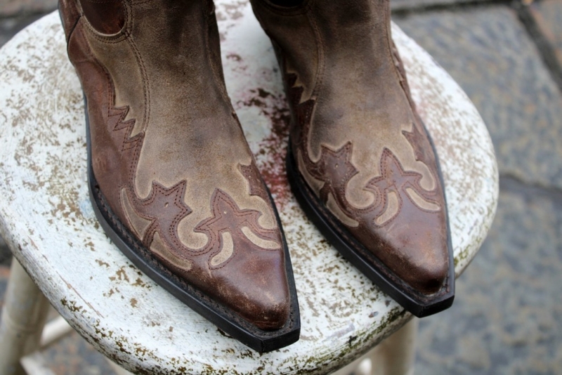 Stivali Pelle Texani Vintage Unisex – Marrone Cuoio (n. 41)