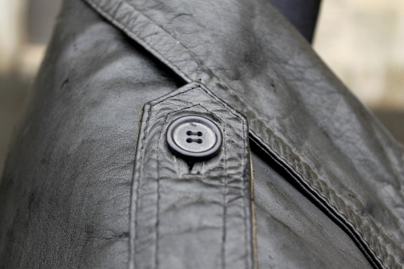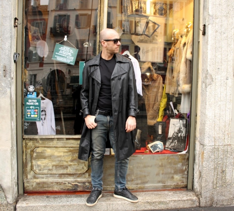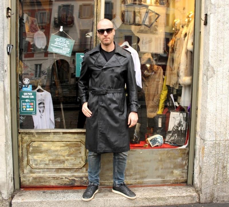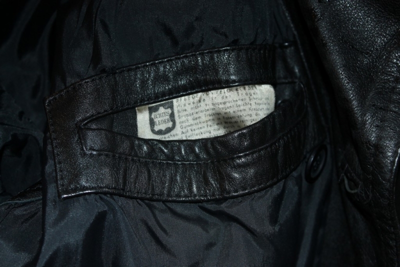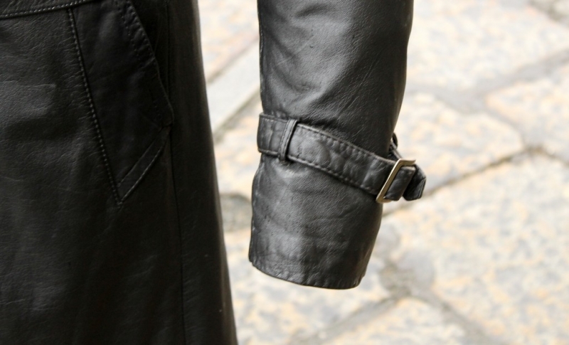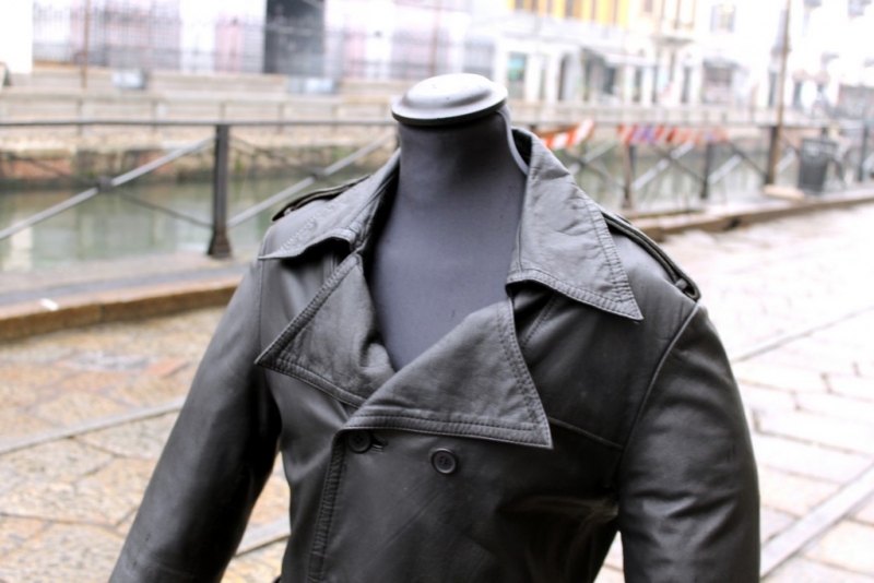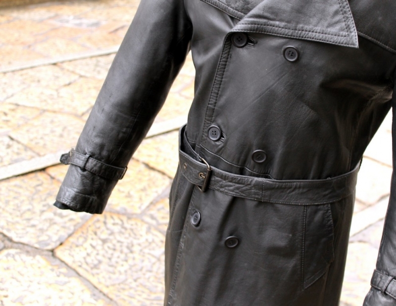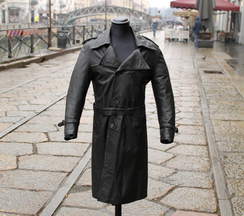 Trench Pelle Nero Vintage Anni 70 Doppiopetto Uom